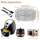 Powanfity エアフライヤーラック 3 層 エアフライヤー 網 304食品グレードのステンレス すべての標準エアフライヤー 4.2Qt、5.3Qt、5.5Qt、5.8Qt、6.8Qt、およびそれ以上の大型エアフライヤー、圧力鍋、オーブンなどと互換性 エアフライヤー アクセサリー 容量を増やす 効率化 やけど防止クリップ付き 19.8*19.8*9.9cm (シリコンオイルブラシなし)