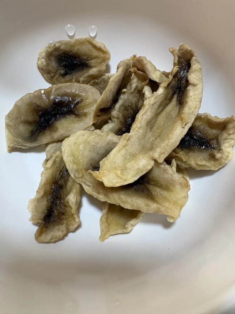 結果は完全なドライタイプというより、外側はややカリッと、中はほんのりしっとりとした仕上がり。バナナ本来の甘みと風味をより感じられる自然なおやつになりました。