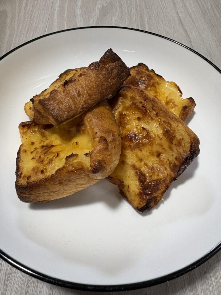 ノンフライヤーでフレンチトーストを作ってみた結果、部分的にサクッとする箇所はあるものの、全体として「サクッとしたフレンチトースト」と言える仕上がりにはなりませんでした。