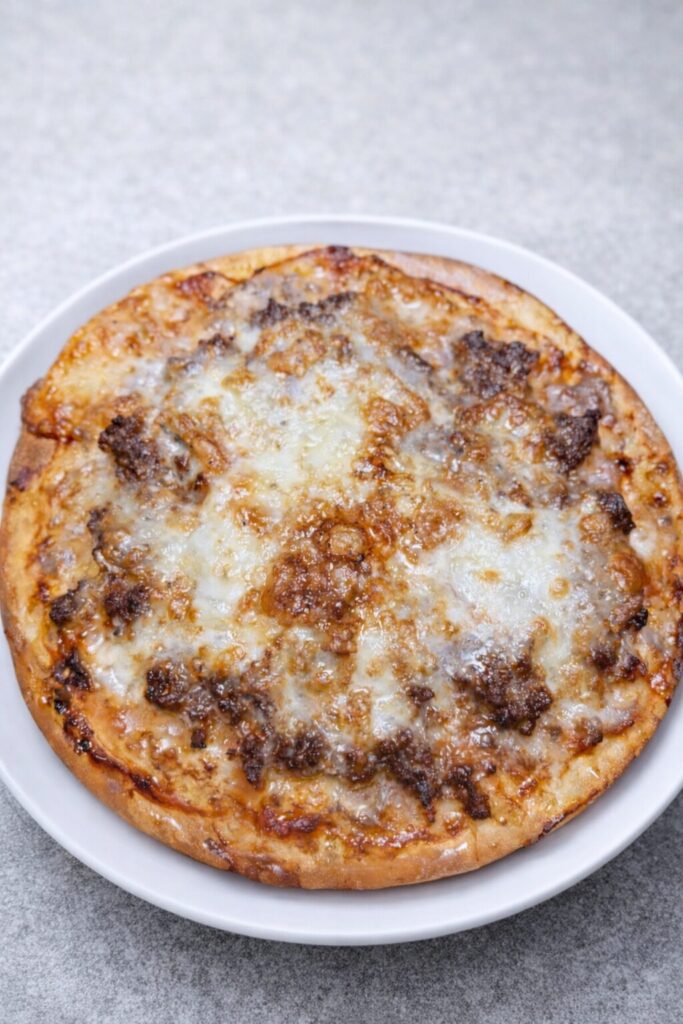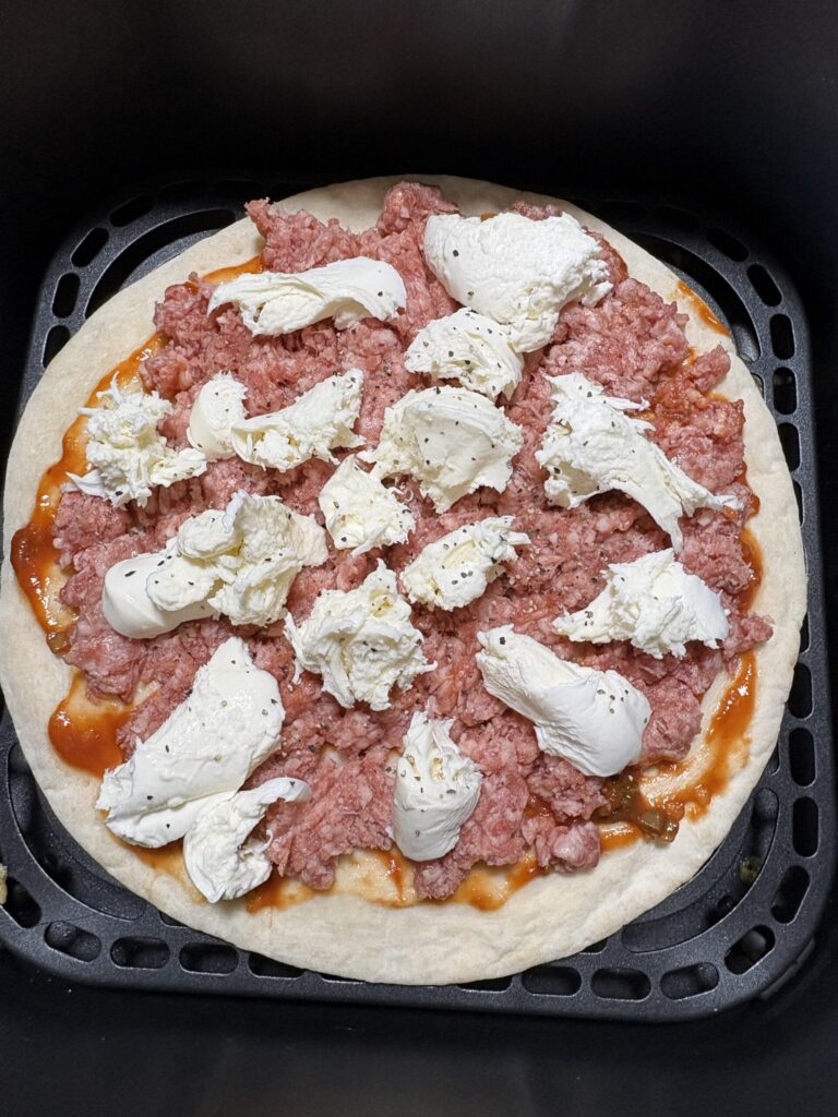 ひき肉とモッツァレラを使ったノンフライヤーピザは、