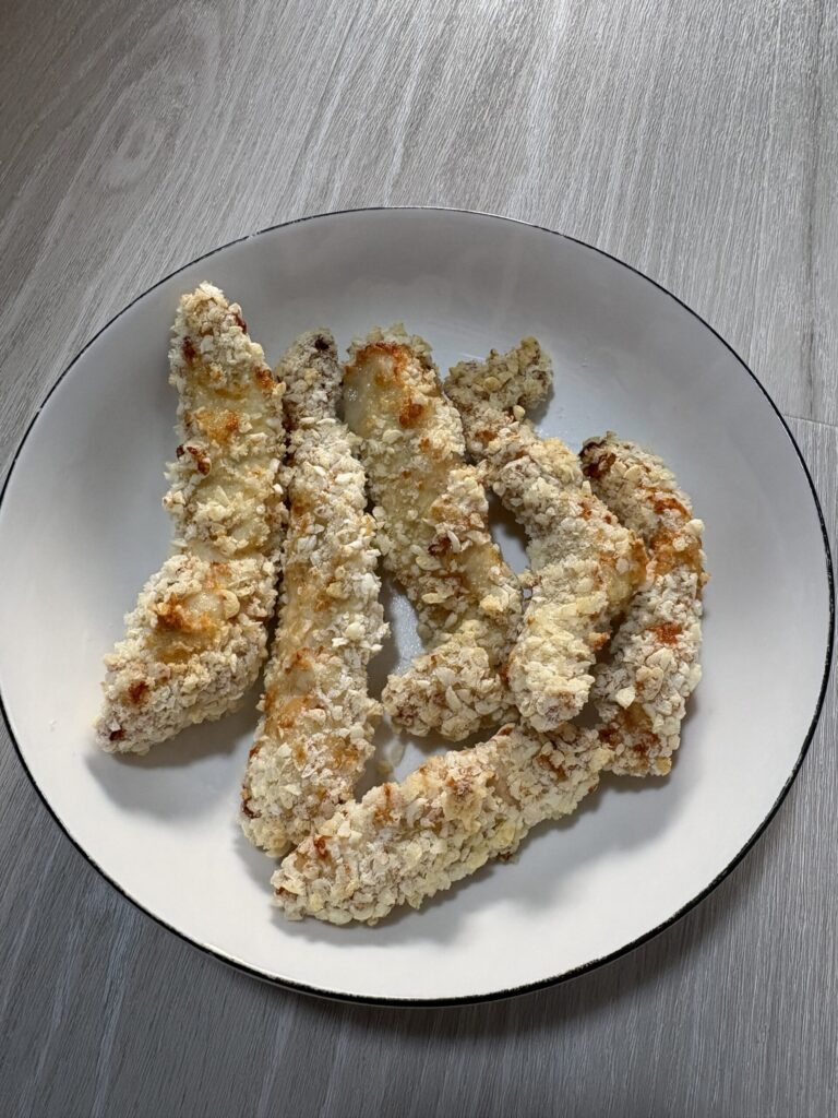 焼き上がったささみは、表面がうっすら色づき、触ると衣がカサッとしています。