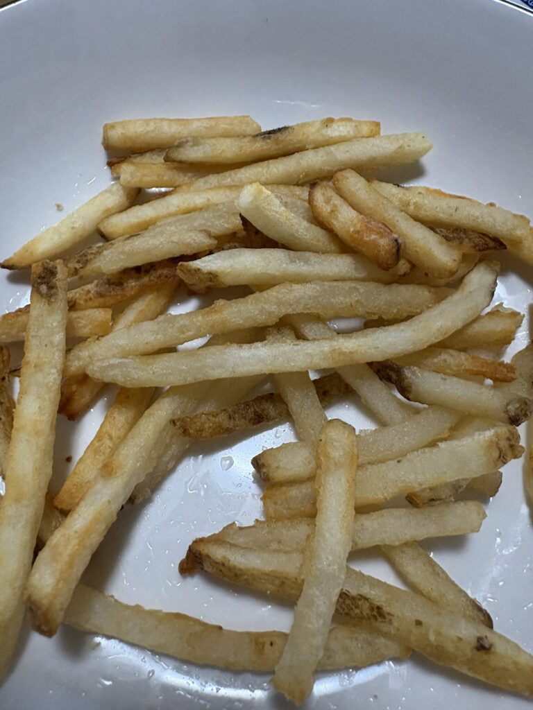 思ったより揚げたポテトのようでとても美味しかったです。これなら揚げなくてもノンフライヤーで十分だなという仕上がりでした。一度ジャガイモからポテトを作ったこともありますが思った仕上がりにならなかったので、ポテトに関しては冷凍のものを使って調理する方がいい気がします。